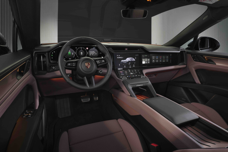 Digiteerimise vallas viib Cayenne Electric sõidukogemuse uuele tasemele. Värskelt väljatöötatud Porsche Driver Experience’i südames on uus Flow Display – elegantselt nõgusa pinnaga OLED-ekraan, mis sulab harmooniliselt kokku keskkonsooliga ning võimaldab teha selge vahe ekraani ja juhtpindade vahele. Seda täiendab täisdigitaalne näidikupaneel 14,25-tollise OLED-ekraaniga ja soovi korral ka 14,9-tolline ekraan eesmise kaasreisija ees. Need kokku moodustavad suurema ekraanipikka kui üheski teises Porsches kunagi nähtud. Esimest korda on Cayenne’ile saadaval ka liitreaalsusega esiklaasinäidik, mille kujutise suurus vastab 87-tollisele ekraanile kümne meetri kaugusel auto ees. Kõik ekraanid sulanduvad harmooniliselt interjööri kujundusse. Kõige sagedamini kasutatavad nupud ja lülitid, näiteks kliimaseadme ja helitugevuse omad, on seevastu analoogtehnika. Lisaks töötati välja selline käetugi, mis võimaldab juhil kasutada digitaalseid ja analoogjuhtseadiseid ergonoomiliselt – isegi eriti dünaamilistes sõiduoludes.